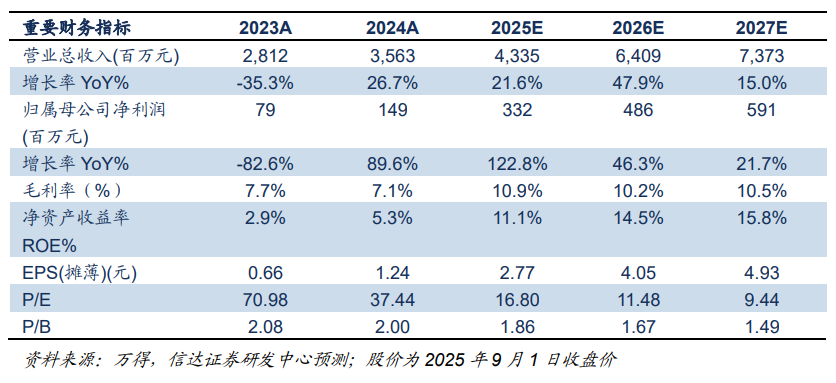 盈利预测与投资评级:我们预测公司2025-2027年归母净利润分别为3.32、4.86和5.91亿元,同比增速分别为122.8%、46.3%、21.7%,EPS分别为2.77、4.05和4.93元/股,按照2025年9月1日A股收盘价对应的PE分别为16.80、11.48和9.44倍,PB分别为1.86、1.67、1.49倍。考虑到公司海内外产能扩展计划,2025-2027年公司有望实现较大业绩增长空间,我们维持对公司的“买入”评级。