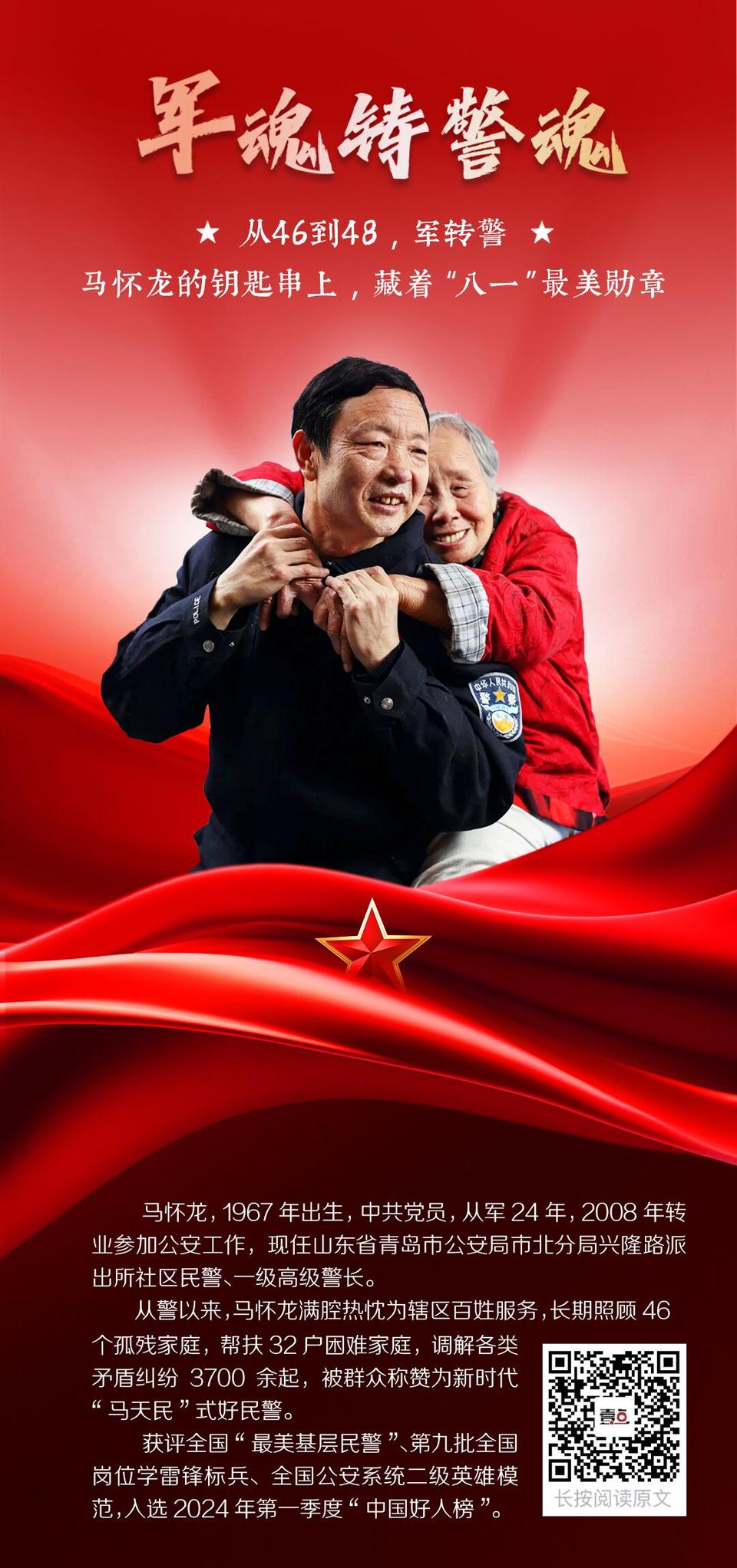“八一”建军节来临之际,青岛市北区兴隆路派出所的军转警马怀龙,钥匙串上又多了两把新钥匙。从46到48,这串沉甸甸的钥匙见证着他从军营到警营的初心坚守——24年军旅生涯锤炼的担当,17年社区警务沉淀的温情,都凝结在每把钥匙的纹路里,成为这个夏天最动人的“八一勋章”。