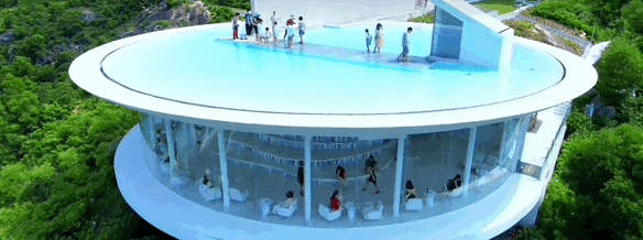 双月湾附近有不少拍照打卡地,一滴水图书馆、悬崖艺术馆、情人桥等都十分出片。