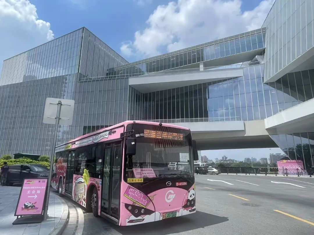 熊猫嘉年华专线现已免费开放!运营路线为地铁芳村站B1出口→白鹅潭大湾区艺术中心(环线往返),运营时间为每日14:00-22:00,约20分钟/班(高峰时段灵活增派),全程免费,无需预约,即到即乘。